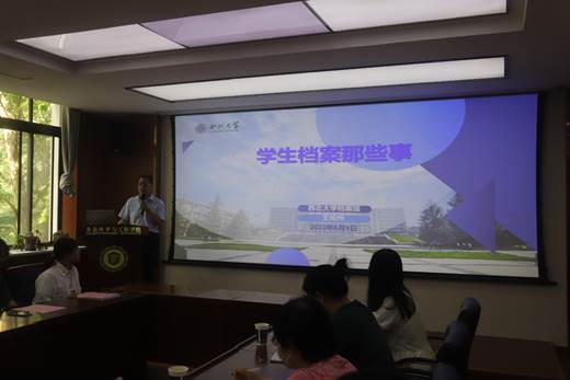 作为我校庆祝“6·9”国际档案日的系列活动之一,档案馆馆长王旭州为师生作了题为《学生档案那些事》的讲座。王旭州从国际档案日的起源、学生档案的概念、内容与作用,学生档案的管理与利用,存在的问题与建议等方面进行了详细讲述。他用幽默风趣的多个案例提醒同学们要切实提高档案意识,让档案意识成为自己工作、学习、生活的一部分,时刻遵守档案法律法规,认真对待自己的档案。在线上同步直播中,部分校外师生积极参与,认真聆听讲座。